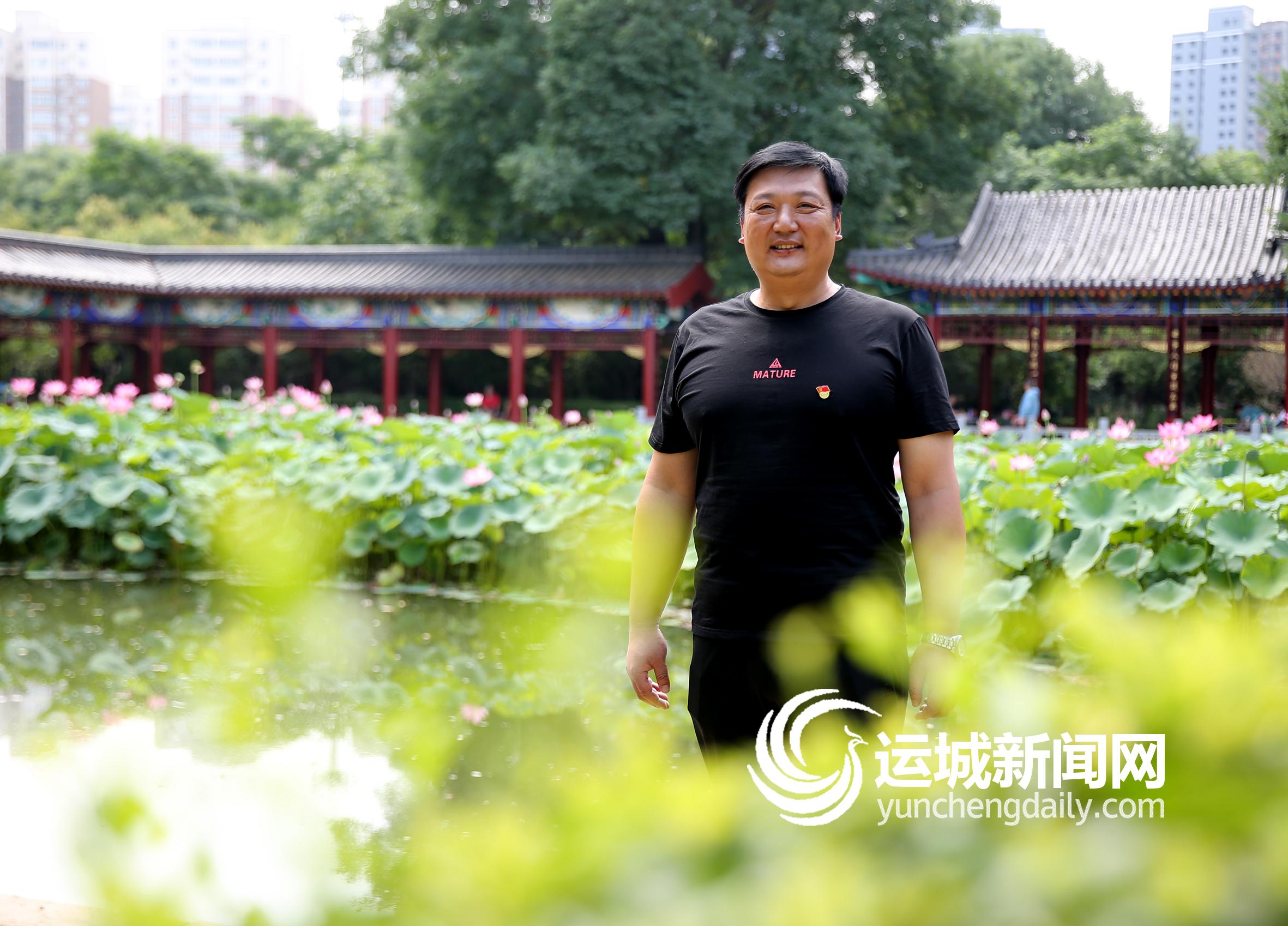 图②:运城市人民公园副主任史海鹏在公园景观湖旁