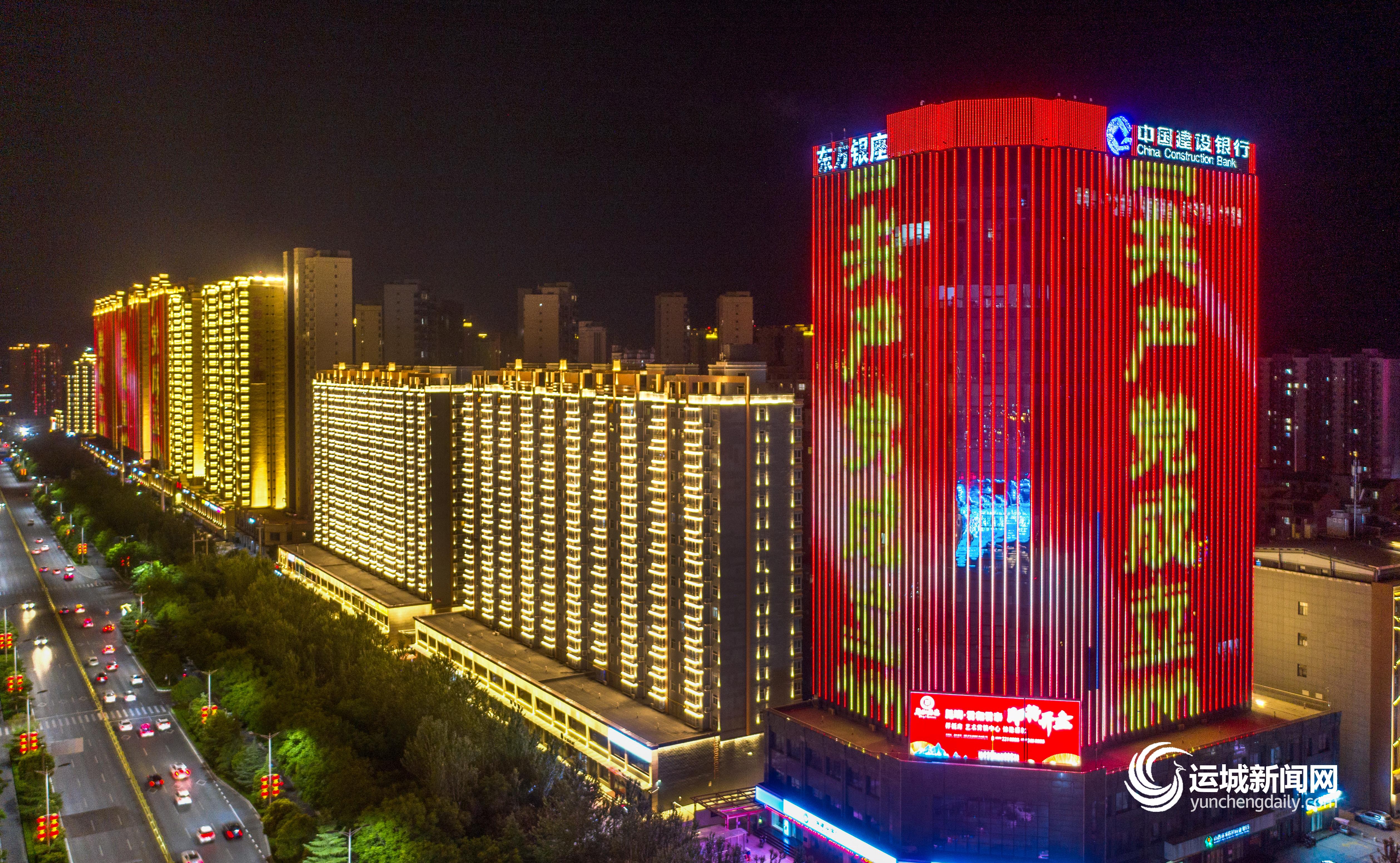 运城晚报讯(记者 祁克宁)“党与人民心连心”“热烈庆祝中国共产党成立100周年”“为中国人民谋幸福,为中华民族谋复兴”……6月27日晚8时至10时30分,市区50余栋高楼点亮飘红,喜迎建党100周年。 据介绍,为庆祝建党100周年,运城市城市管理局充分利用中心城区夜景亮化平台,精心制作了主题宣传片,在中心城区50余栋高层楼体上,以和平鸽飞翔及主题标语飘字形式,展示我市人民坚定不移听党话、矢志不渝跟党走的坚定信念,体现我市人民在党的领导下奋斗百年路、启航新征程的豪迈气概。