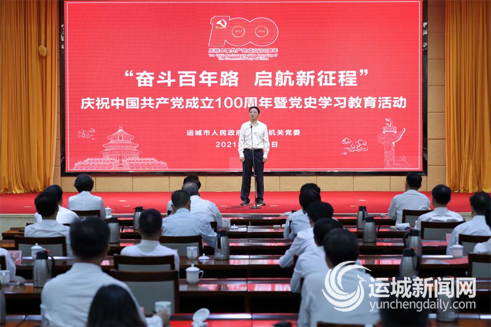 本报讯(记者 张 越)6月30日下午,市政府办公室机关党委举行“奋斗百年路、启航新征程”庆祝建党100周年活动暨党史学习教育。市政府党组书记、市长储祥好以普通党员身份参加并讲话,与党员干部共同缅怀党的百年历程,热情讴歌党的辉煌成就,深情表达对党的忠诚与热爱。市领导王志峰、梁清燕、崔元斌、董旭光、刁海鹏参加。市政府秘书长张保安致辞。