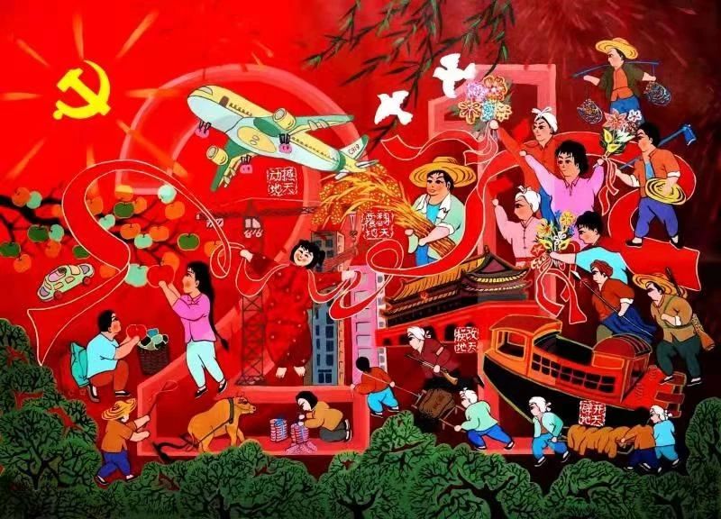 黄河鼓韵颂“七一”(农民画) 刘翠娟 作