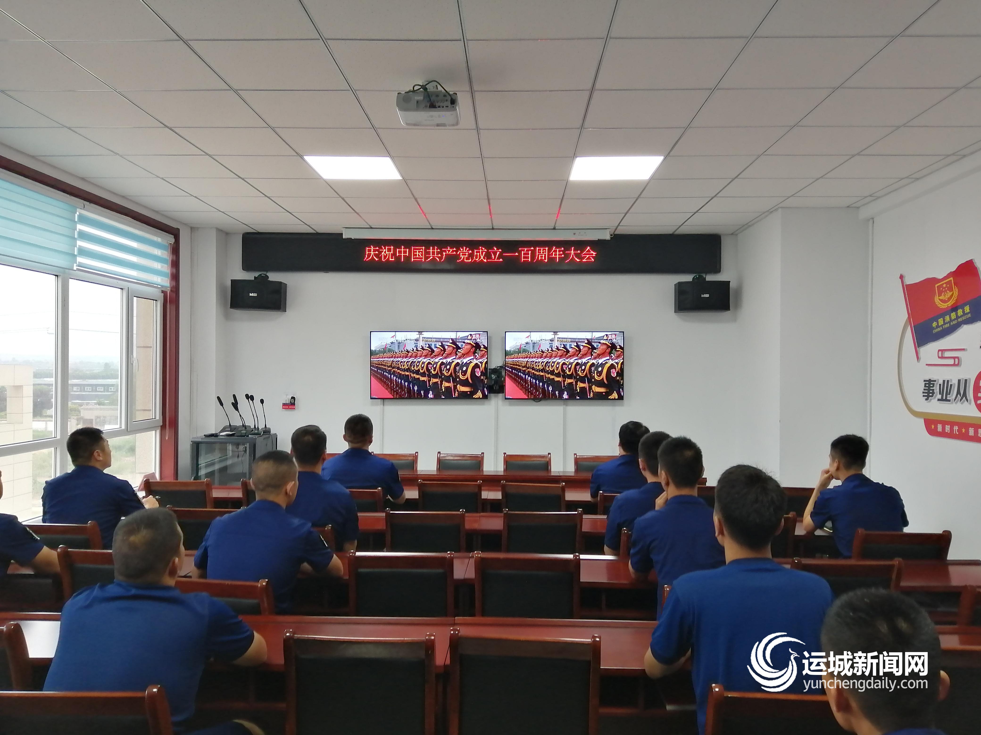 运城晚报讯(记者 寻霄)7月1日上午,运城市消防救援支队组织所有指战员、专职队员等集中观看庆祝中国共产党成立100周年大会直播,交流心得体会,庆祝党的百年华诞。