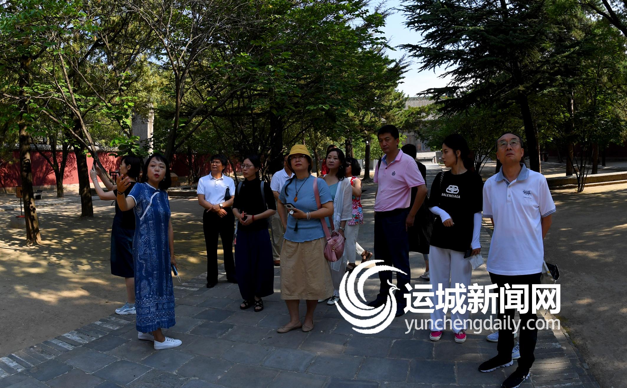 ▲采风团一行在芮城永乐宫聆听讲解员介绍