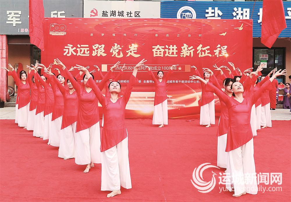 运城晚报讯(记者 郝丽莎)7月1日,盐湖区东城办盐湖城社区联合金鑫物业党支部和市老干部活动中心乐和演唱团,在盐湖城小区举办“永远跟党走 奋进新征程”文艺演出,庆祝中国共产党成立100周年。
