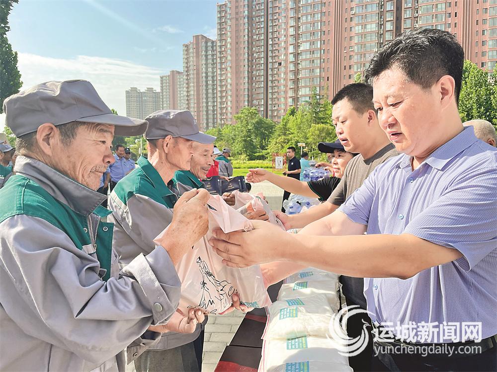 运城晚报讯(记者 王露)7月6日早8时,市区禹都公园近200名长时间在高温下劳动的园林工人、环卫工人和志愿者收到了特殊的礼物,感受到了夏日的清凉。
