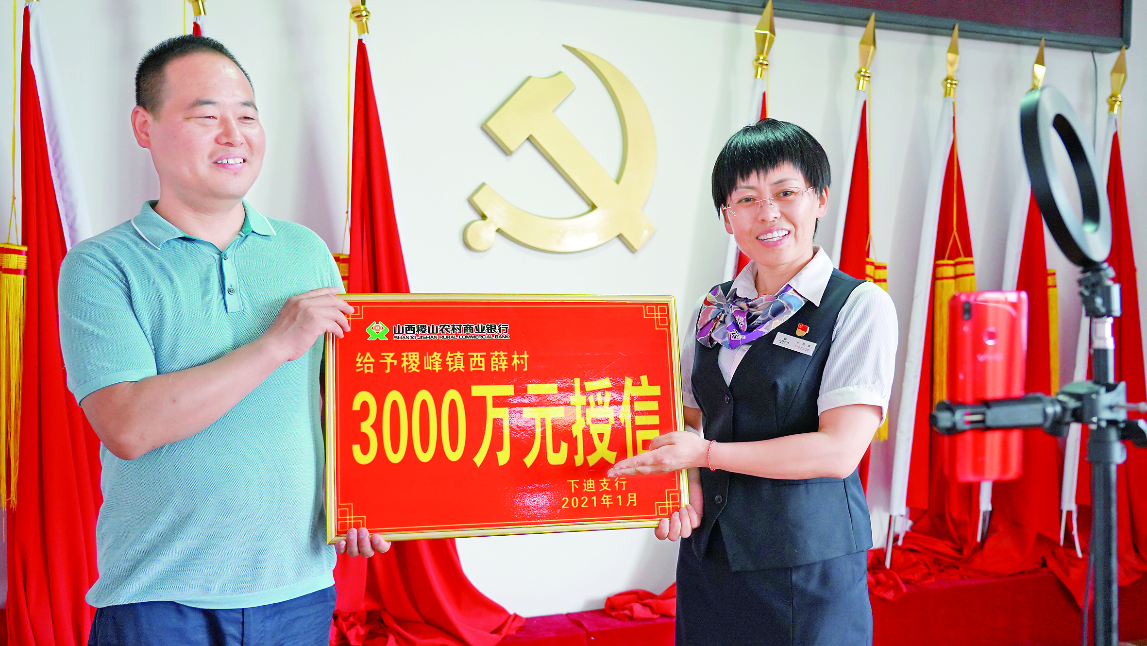 稷山农商银行下迪支行行长孙艳果在抖音平台直播为辖内西薛村进行“整村授信”