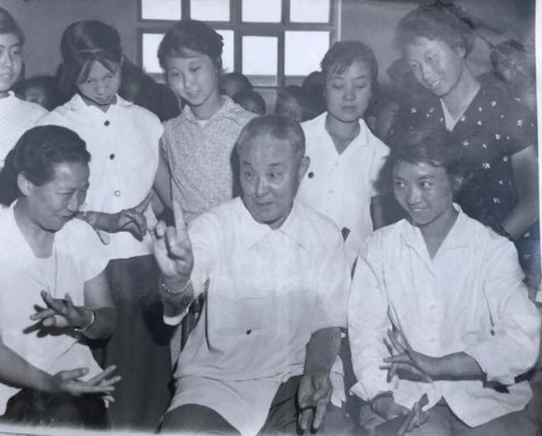1961年夏,著名京剧表演艺术家尚小云在太原与王秀兰等在一起作艺术交流。(资料图片)