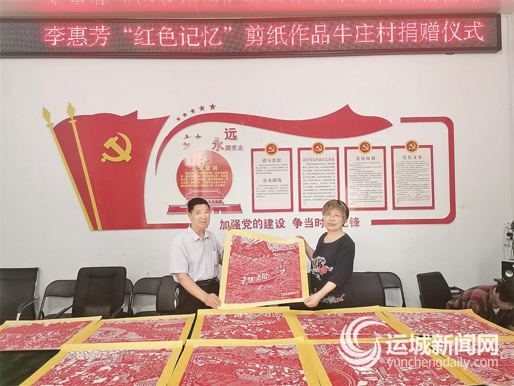 运城晚报讯(记者 崔萌)为庆祝中国共产党成立100周年,日前,盐湖区四季绿城社区居民、盐湖区非物质文化遗产剪纸传承人李惠芳,将一套(共10幅)主题为中国共产党百年历史的剪纸作品,捐赠给了盐湖区上王乡牛庄村红色教育基地。