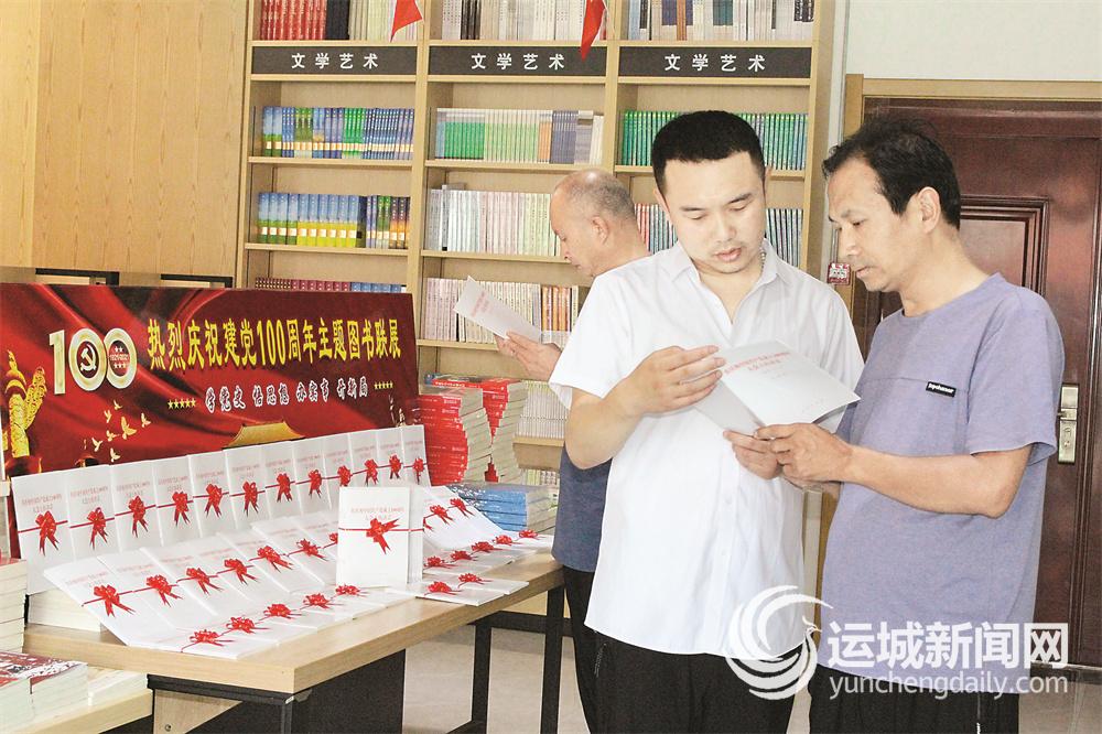 7月9日,在闻喜县新华书店,工作人员为读者介绍习近平《在庆祝中国共产党成立100周年大会上的讲话》单行本。 目前,全市上下掀起学习习近平总书记“七一”重要讲话精神的热潮,各地新华书店开辟党建书屋,与机关、企事业单位、学校等联合,开展丰富多彩的学习活动,引导广大党员和群众进店学习。