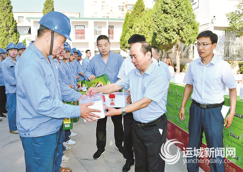 运城晚报讯(记者 郝丽莎)近日,我市进入盛夏高温季节。7月9日,市总工会一行人先后来到国网运城供电公司输电运检中心、市快递行业工会联合会和体育公园,开展“我为群众办实事——情系职工,清凉一夏”活动,看望慰问坚守在高温一线的工作人员(右图)。