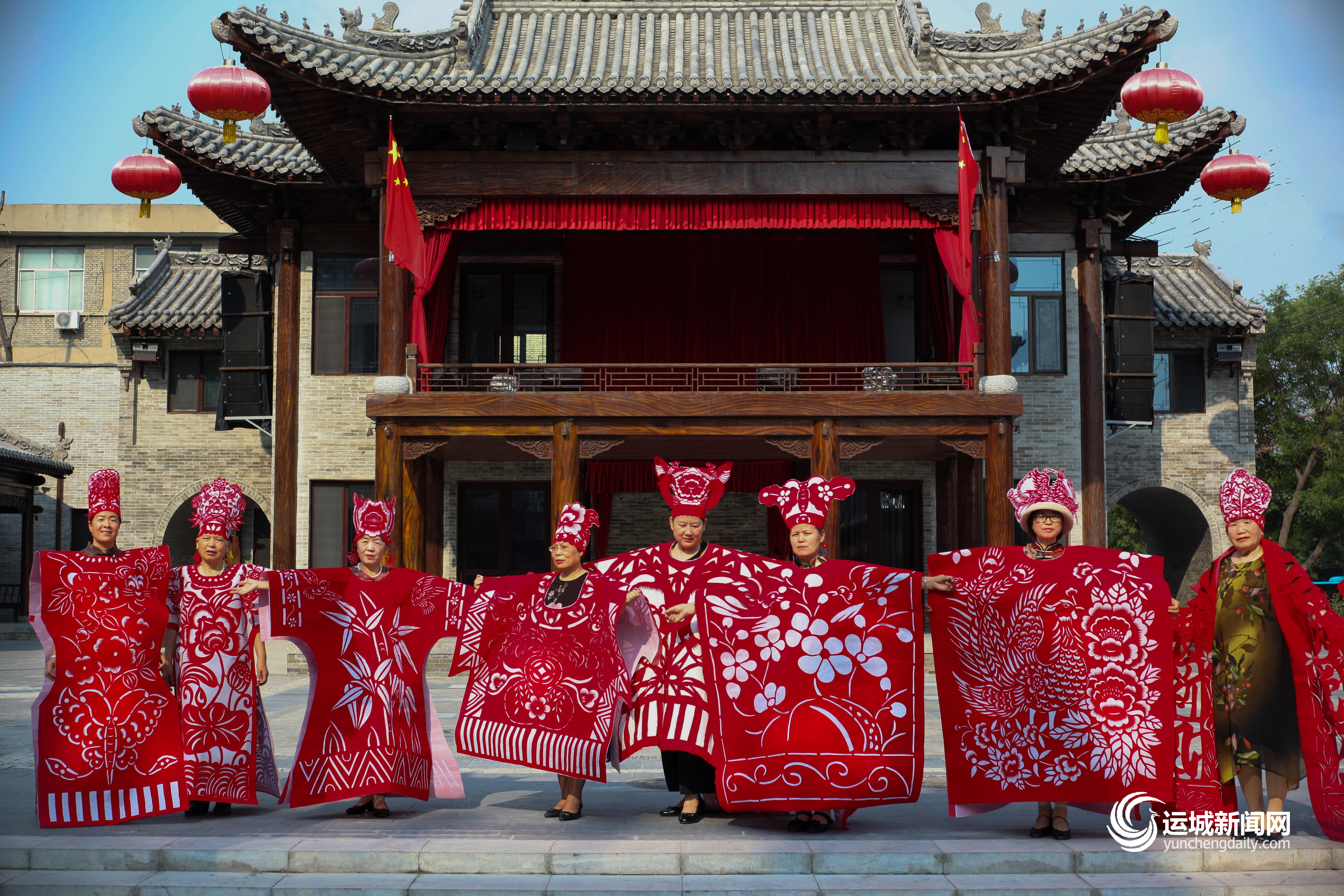 盬街戏台前展演中的剪纸服装展