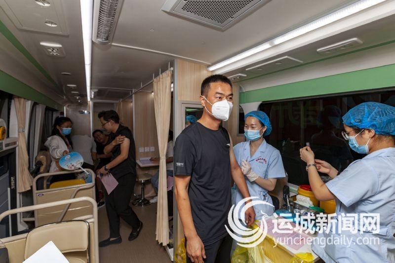 ▲7月13日,在市区祥和小区,医务人员在新冠疫苗流动接种车内为居民接种疫苗。