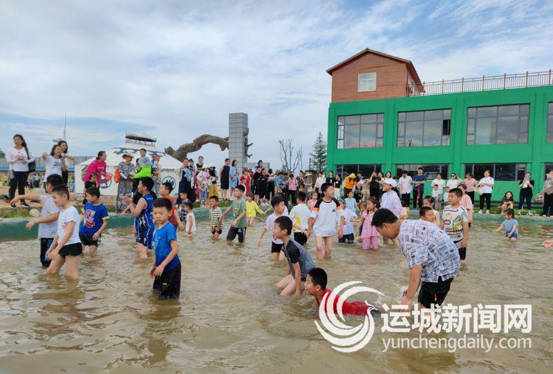 近年来,平陆风口桃花源主题公园依托生态优势,开发本土研学课程,推进高质量研学产品开发,倾力带动当地全域游发展。图为孩子们在玩“摸鱼”“逮鸭子”游戏。 记者 王斌 摄