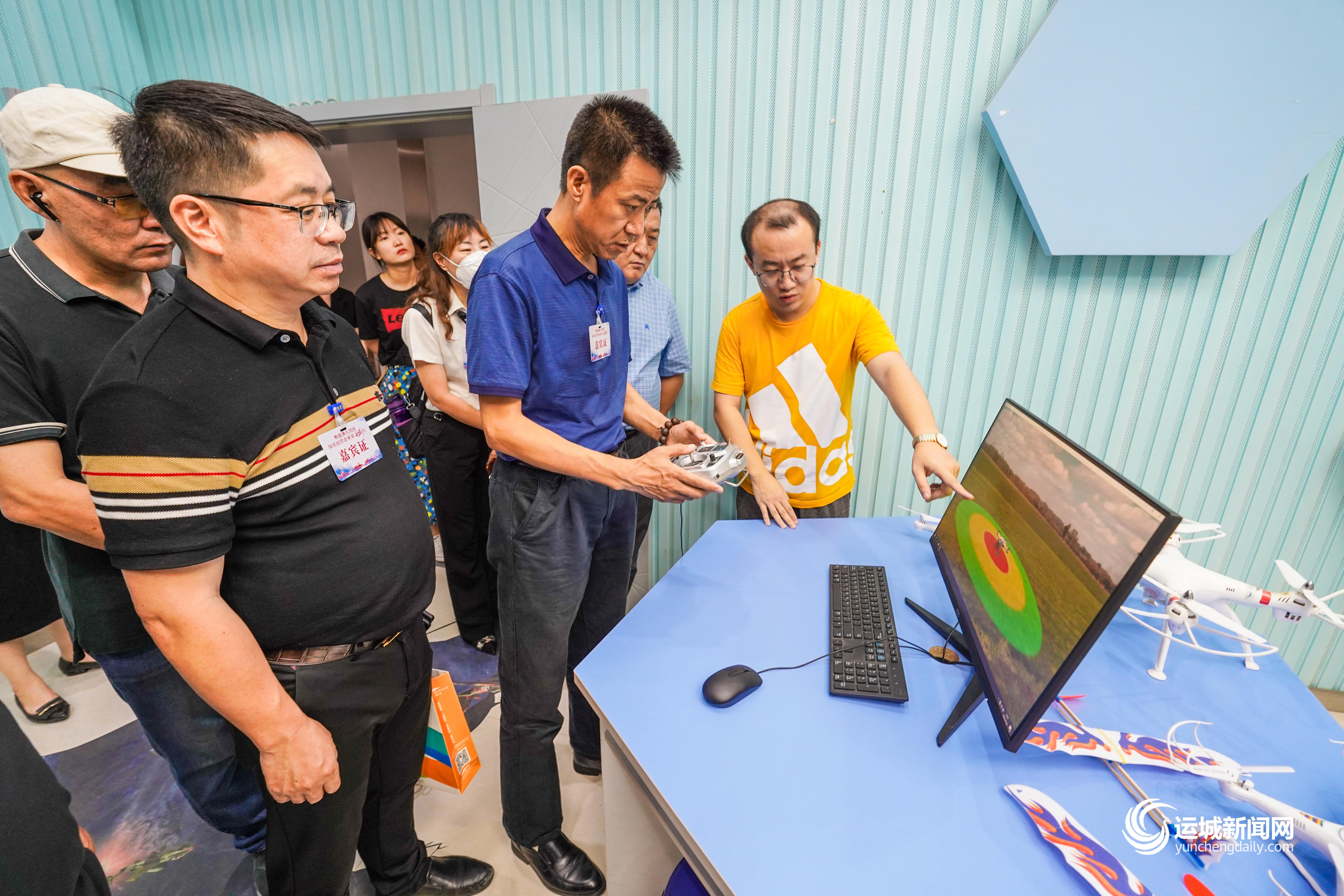7月14日,粤港澳大湾区知名民营企业家在盐湖高新技术产业开发区山西寰烁电子科技股份有限公司智慧教育教室体验无人机模拟飞行系统。 见习记者 陈方斌 摄