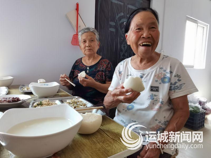 一份小葱拌豆腐、一份土豆丝,还有一个白面馒头和一碗大米汤……看似简单的一顿午餐,对于临猗县楚侯乡南村70岁以上老年人来说,不仅填饱了肚子,更温暖了内心(上图)。
