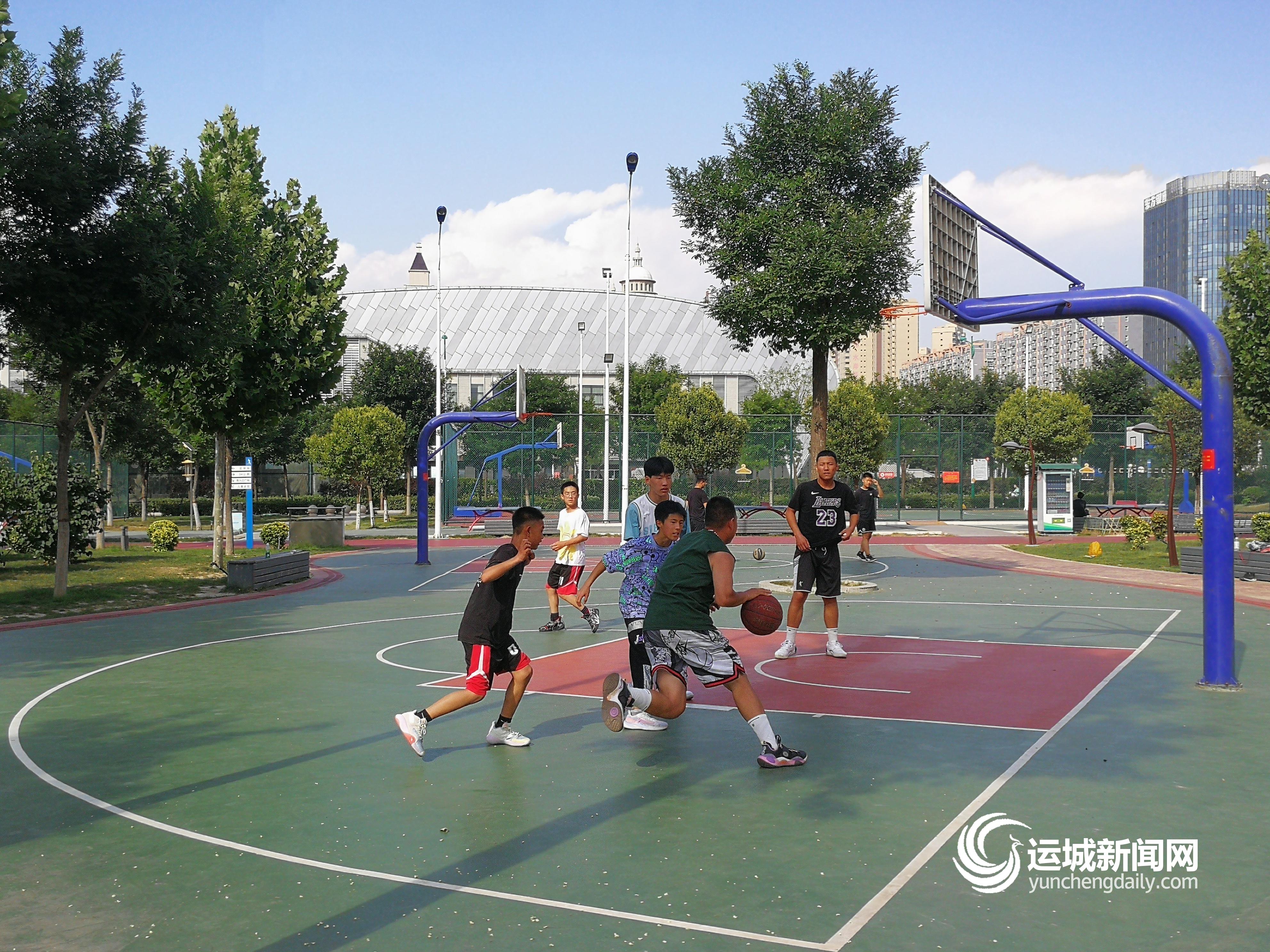 几名学生在市体育公园篮球场打篮球 郑 菲 摄