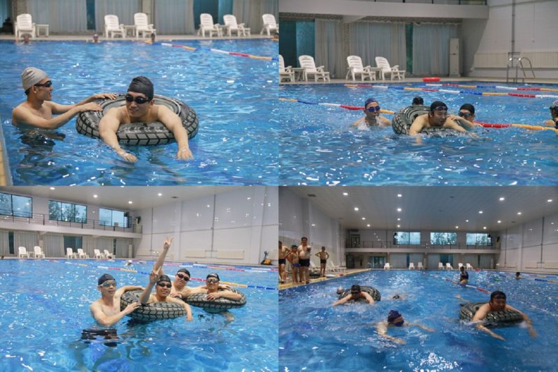 团队接力比赛中的“单人推带”环节,参赛者用游泳圈作为竞赛道具,同时需要两人默契配合。救援比赛中设置了“心肺复苏”项目,增强了职工的安全意识。“水中捞球”环节中,各小组团结协作、奋勇争先,场边观众加油助威。整场比赛中,欢呼声、呐喊声持续不断。 (张桐)