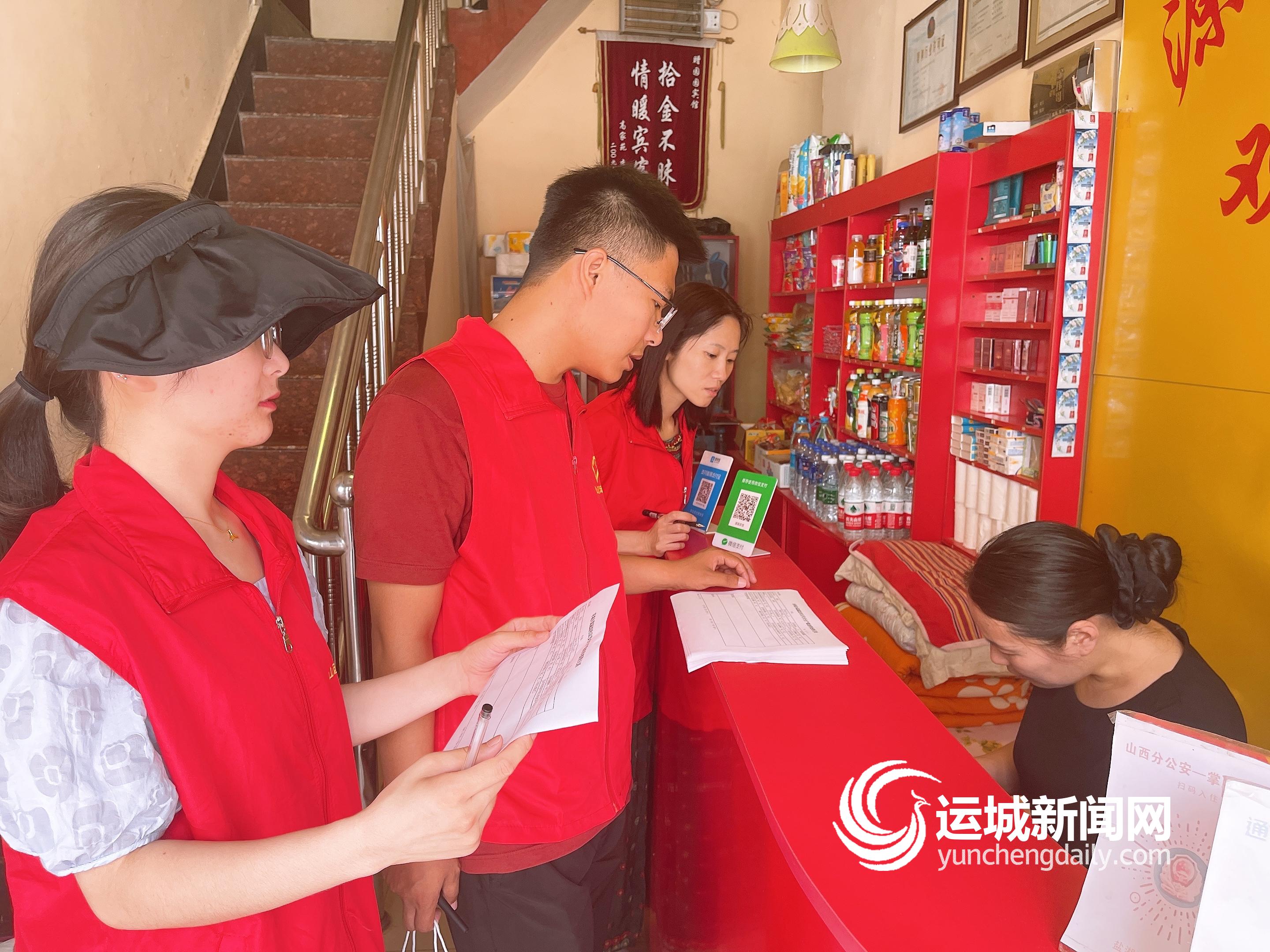 ▲7月17日,盐湖区东城街道高家垣社区工作人员对辖区沿街门店挨家挨户进行安全排查。