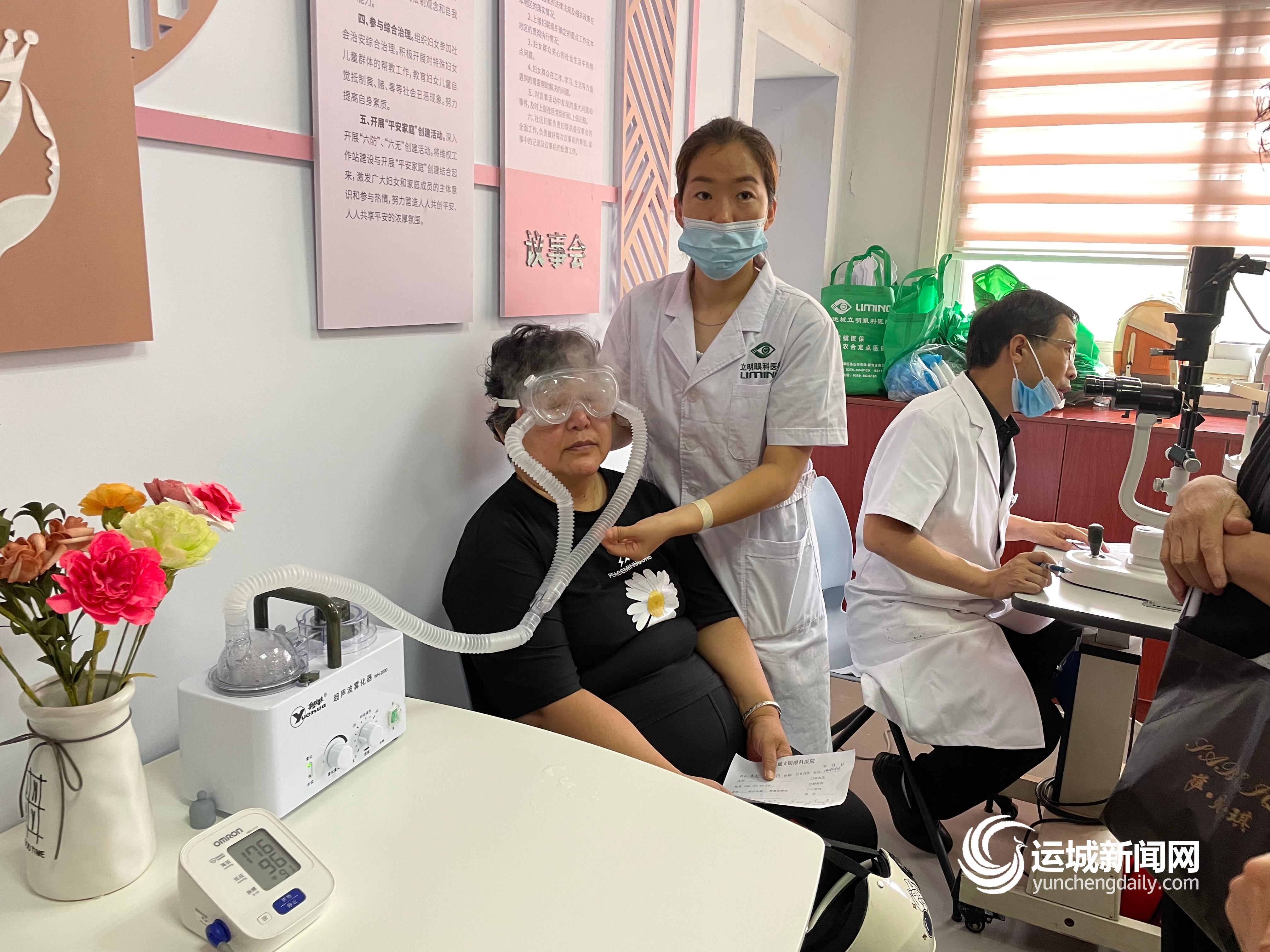 讲座为居民科普了一些预防眼部疾病的常见方法,医护人员为居民进行了视力检测、裂隙灯检查、眼底镜检查、白内障及青光眼筛查(上图)。此外,盐湖区妇联和社区工作人员还为居民发放普法书籍,并结合相关案例,向居民普及相关法律知识,提高了居民知法、懂法、守法、用法的意识。