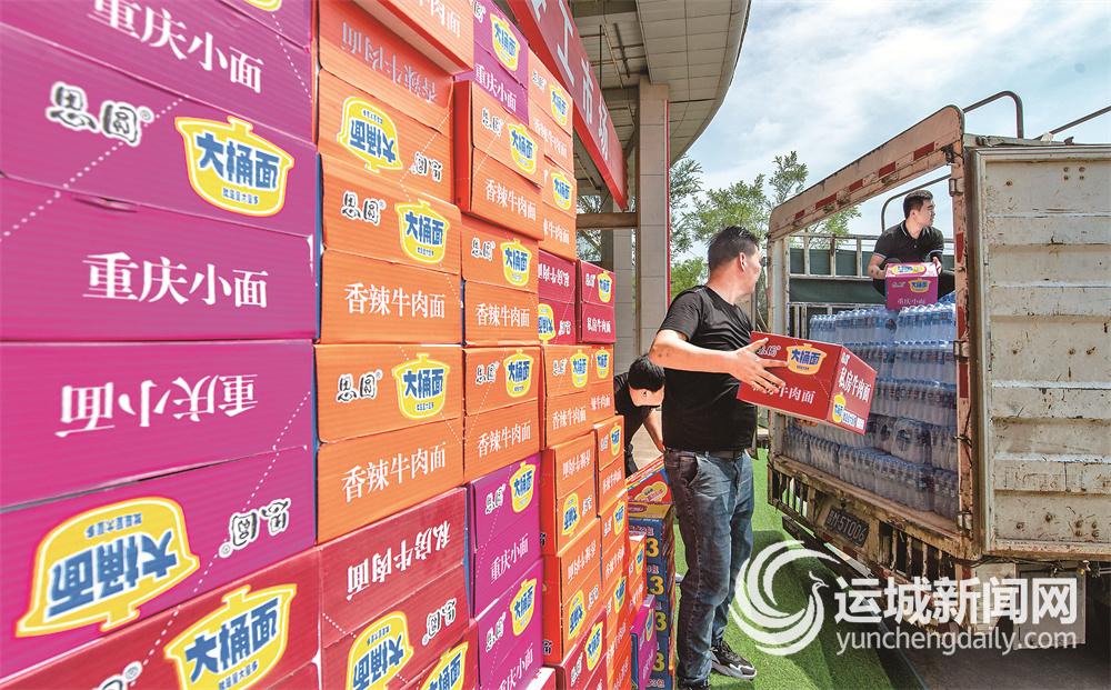 运城晚报讯(记者 陶登肖)7月26日上午10时,在市区零工市场内,市人力资源协会正组织人员将价值万余元的150箱方便面、370件矿泉水等生活物资装车,准备发往河南省鹤壁市浚县卫贤镇政府的灾民安置点。