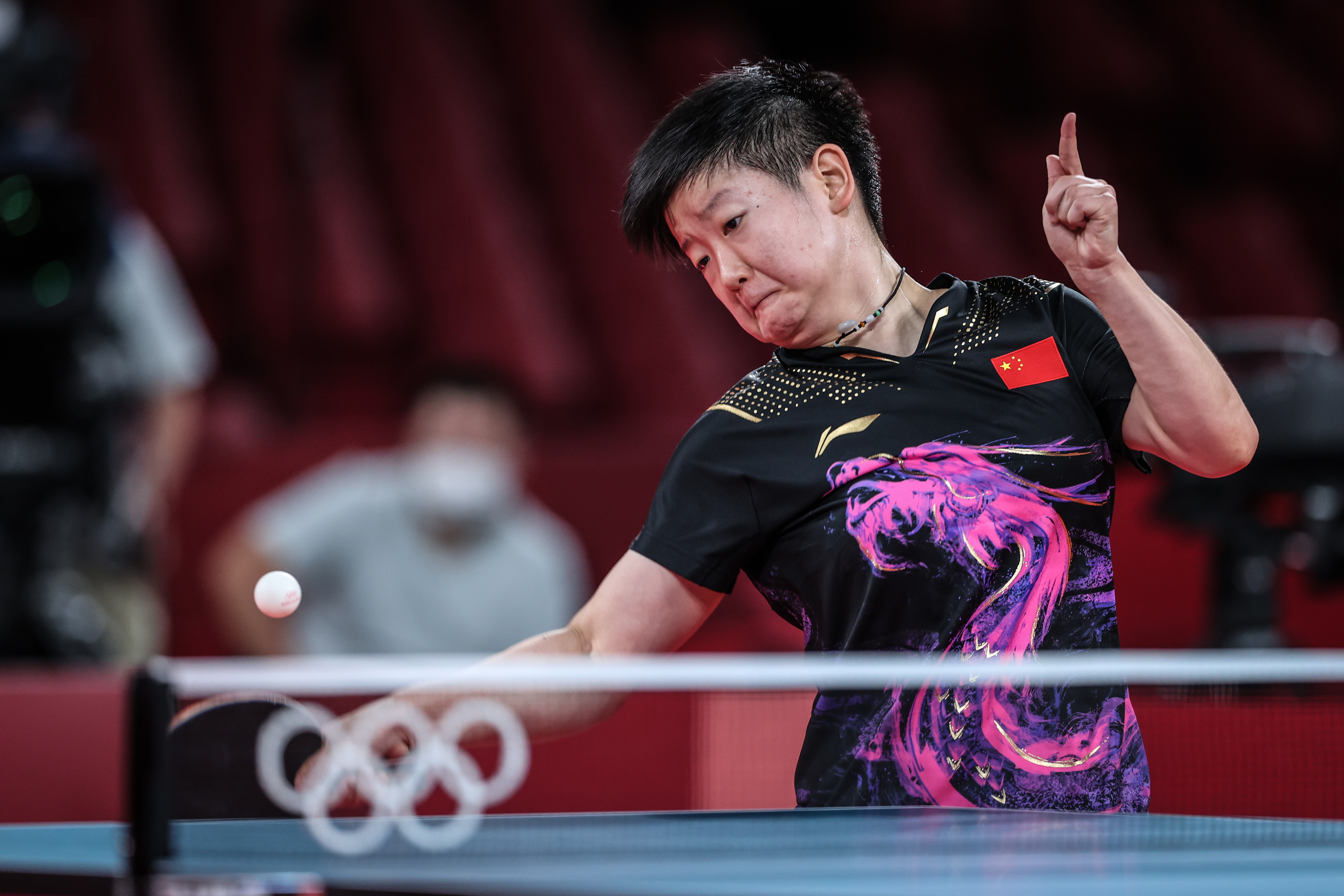 ▲7月28日,孙颖莎在比赛中回球。 当日,在东京奥运会乒乓球女子单打四分之一决赛中,中国选手孙颖莎以4比0战胜德国选手韩莹,晋级半决赛。 新华社记者 潘昱龙 摄