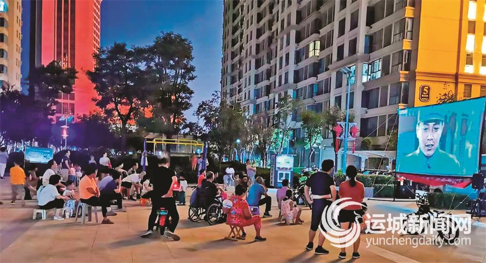 ▲7月26日晚,盐湖区电影公司在外滩首府社区山水花都小区文化广场,播放红色电影《浴血太行》。 连日来,盐湖区电影公司扎实推进区委宣传部红色电影进社区、进企业等“七进”活动,把“我为群众办实事”红色电影展映活动开展到社区和各乡镇的文化广场。活动7月1日开始,为期1个月,每周六、日晚放映,展映的均为反映党的辉煌历程和光辉成就的优秀影片。