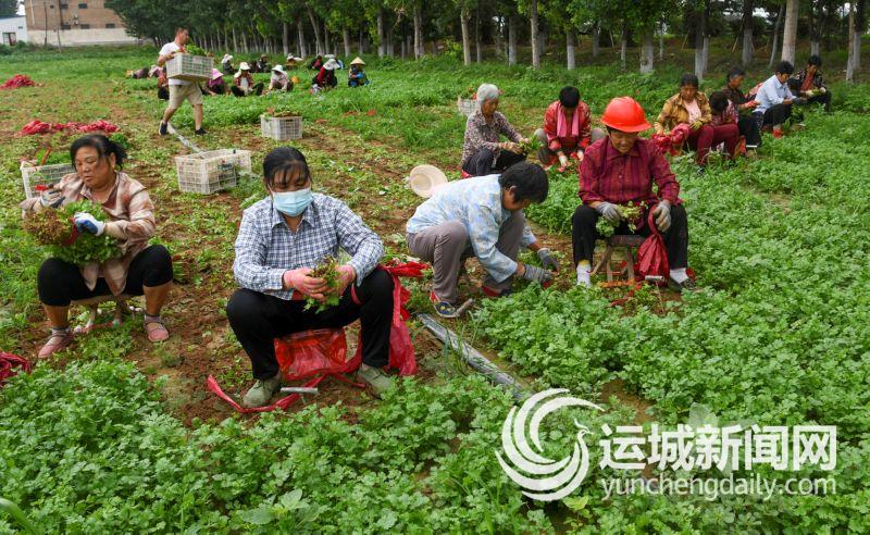 7月26日,闻喜县裴社镇大泽村村民在收割大田香菜。