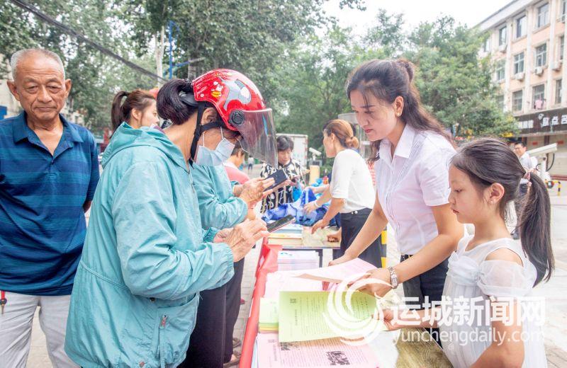 7月28日,夏县防震减灾中心工作人员在向群众发放宣传资料。