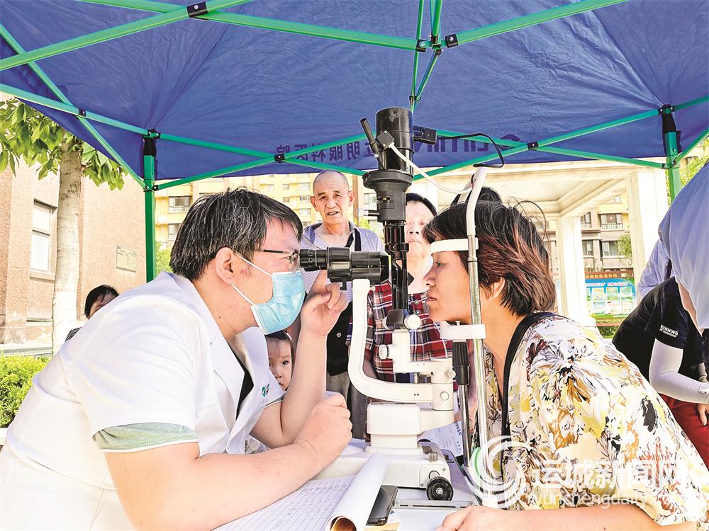7月27日,盐湖区北城街道学苑花都社区联合我市立明眼科医院,在天鹅湾小区南门广场开展眼部义诊活动。