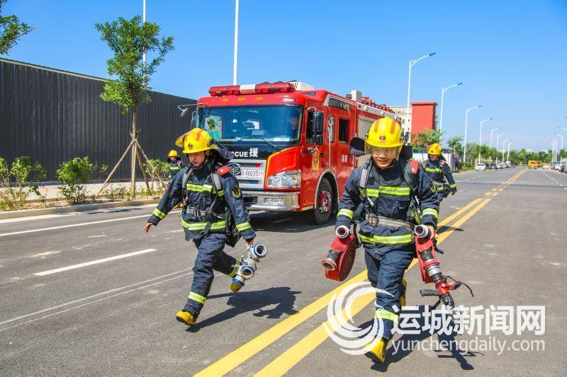 7月30日15时,室外温度达到36度,地表温度早已超过40度,在盐湖区勤学街消防救援站,消防指战员们在进行车操训练的准备工作。