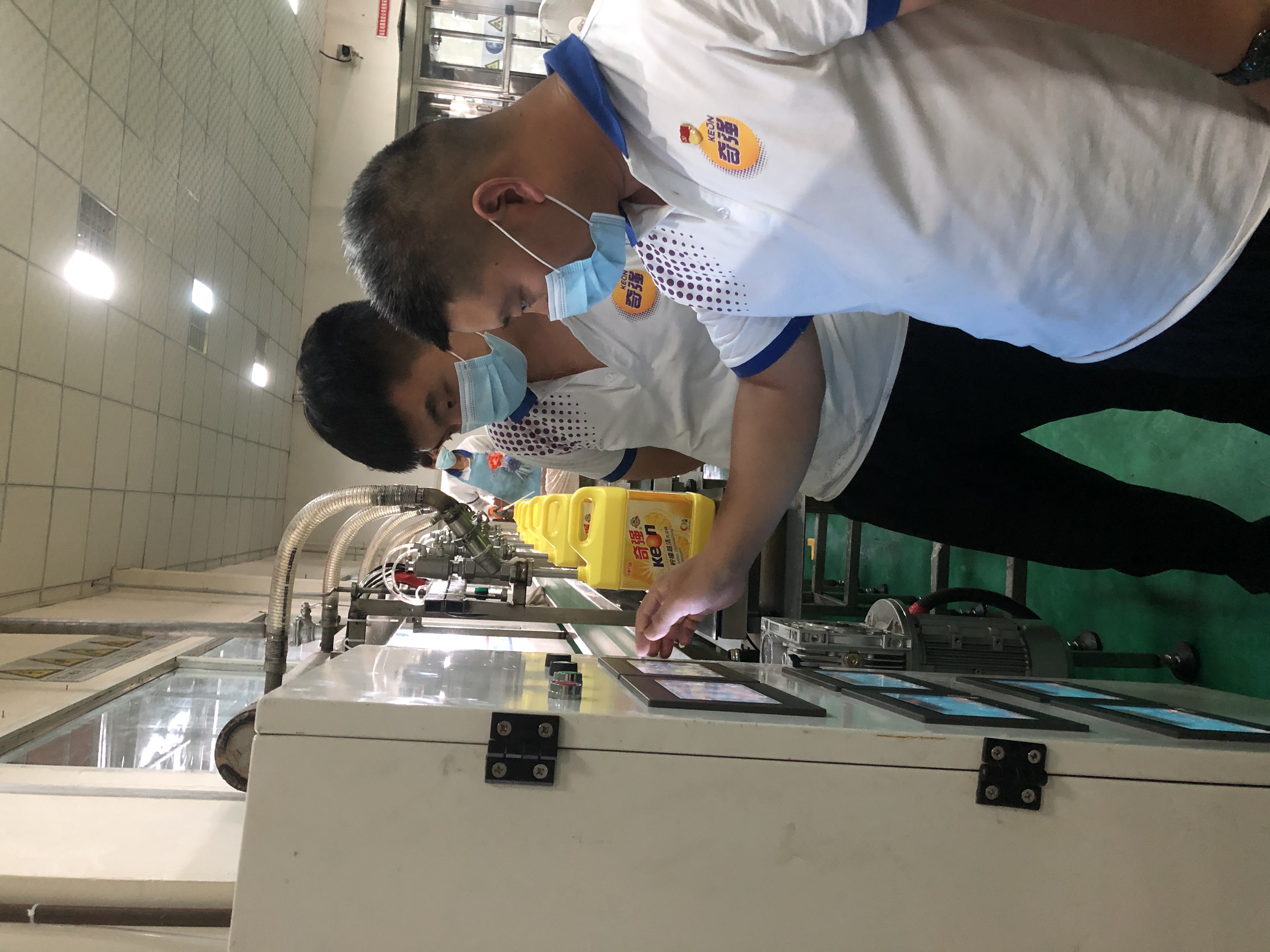 ——5kg生产线改造工程已全部完成。日前,10kg洗洁精已经在该生产线上生产,线上人员从原来的7人日产900件,提升为现在的5人日产920件,效能提升显著。