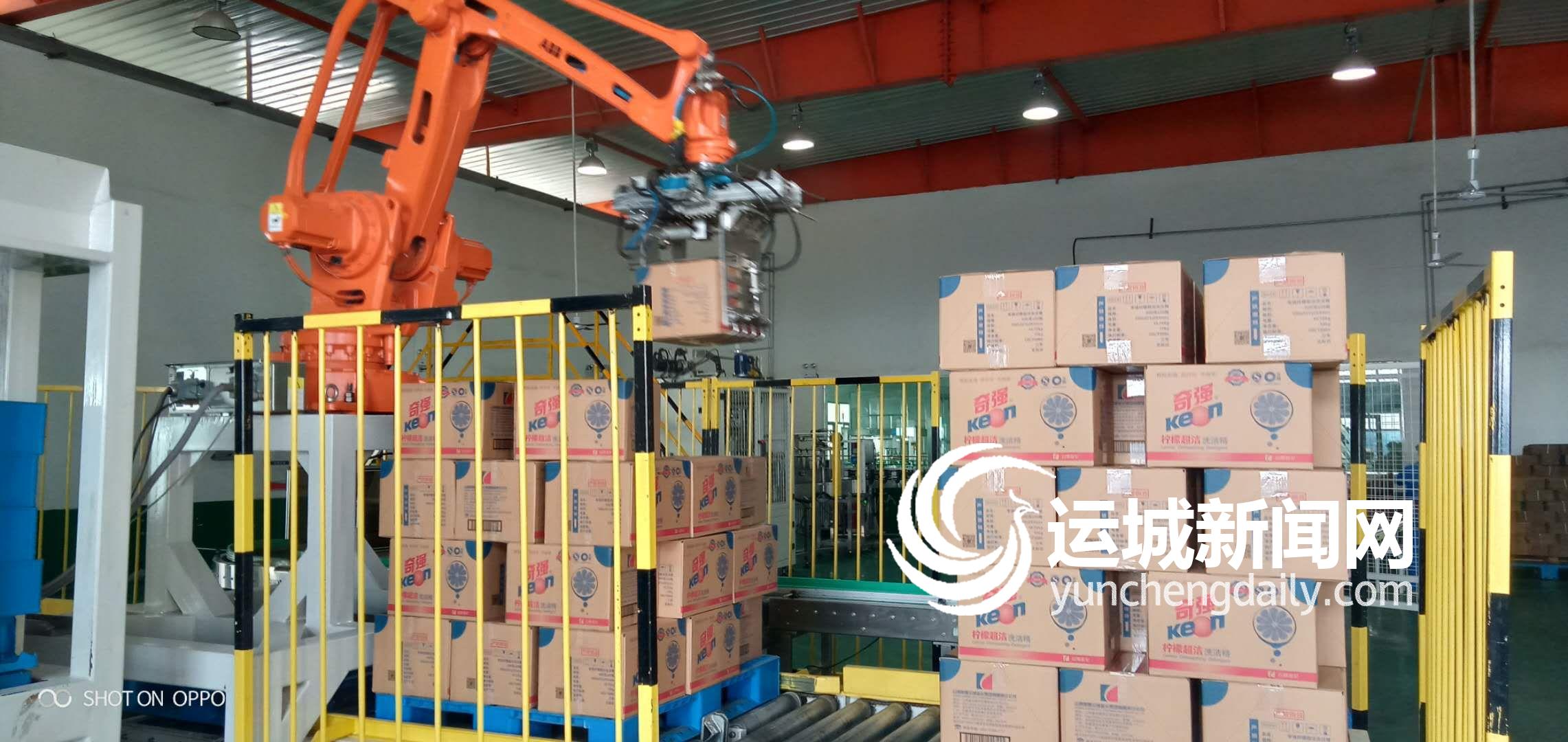 昌吉南风引进的码垛机器人,可同时满足公司3条生产线的码垛任务,代替了5个人的工作量,在降低劳动强度的同时提升了生产效率。