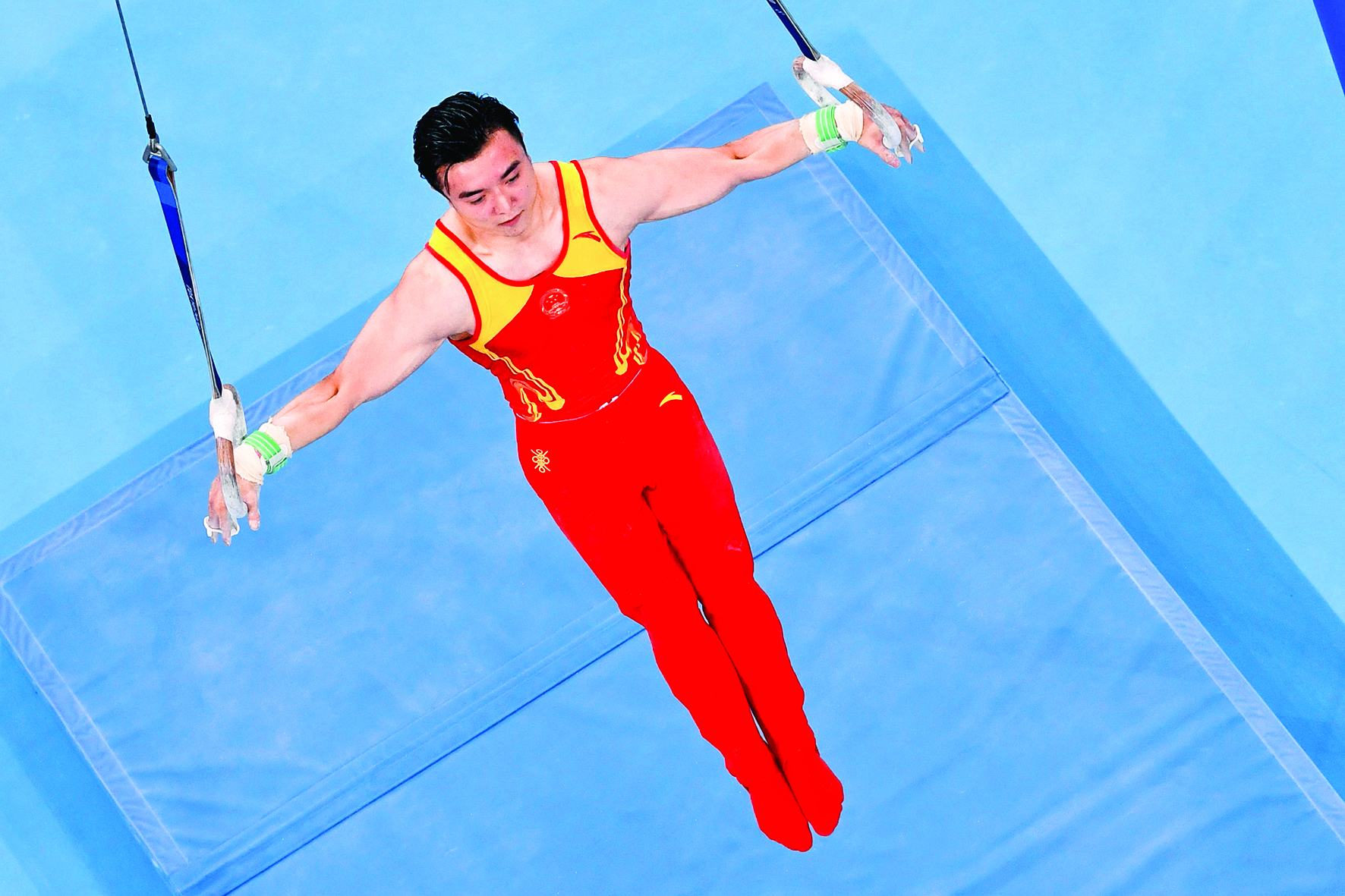 8月2日,刘洋在比赛中。当日,在东京奥运会体操男子吊环决赛中,中国选手刘洋夺得冠军。新华社记者 徐子鉴 摄