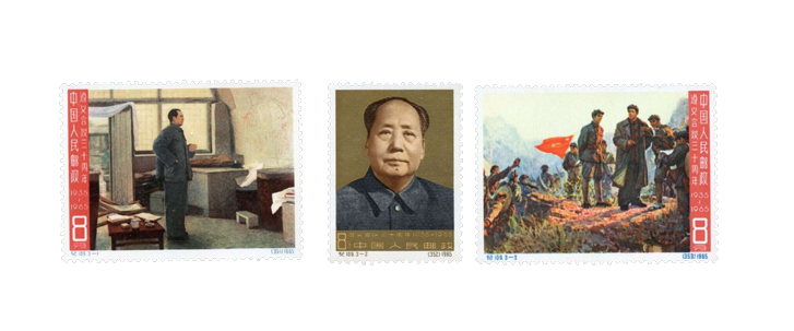 1965年1月31日,邮电部发行《遵义会议三十周年》纪念邮票,一套三枚,志号为纪109。邮票图案名称分别为《决战前夕》(351)、《毛主席像》(352)、《娄山关大捷》(353)。