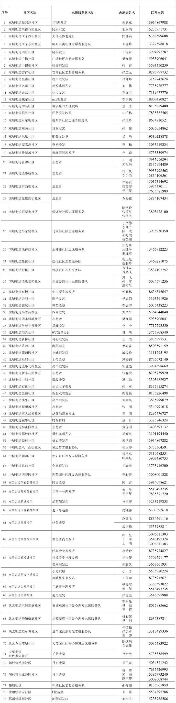 盐湖区“义务理发志愿行”活动志愿者名单