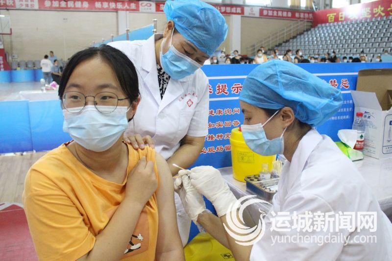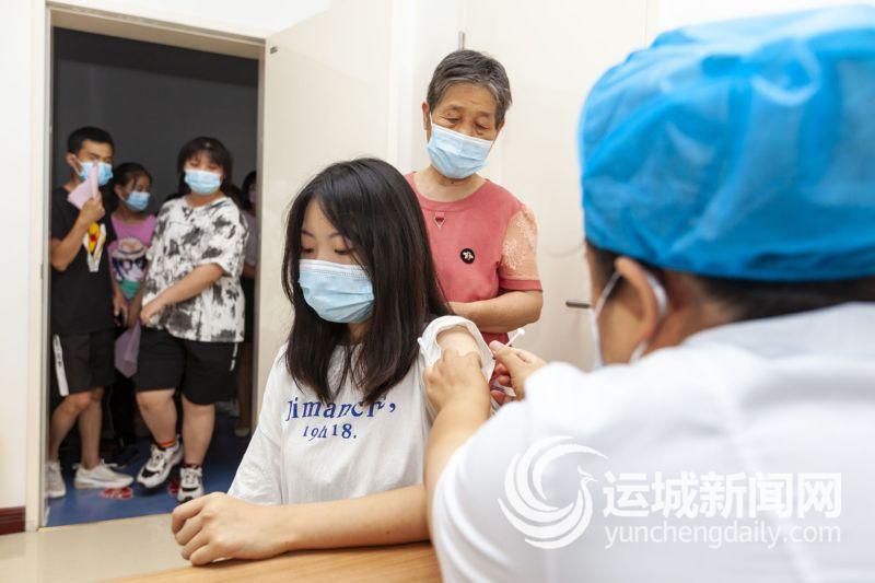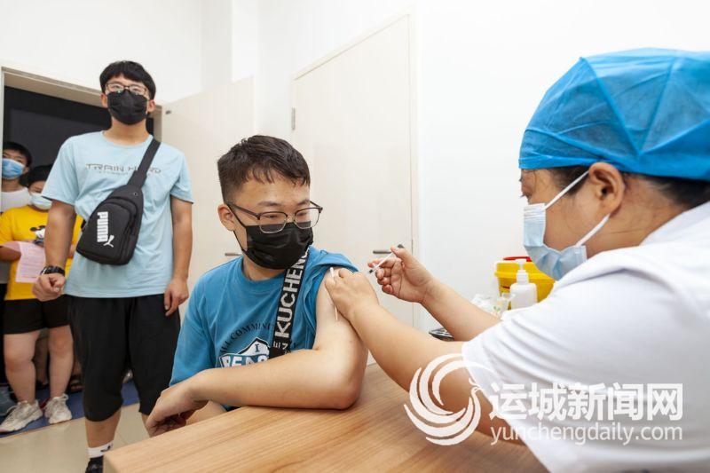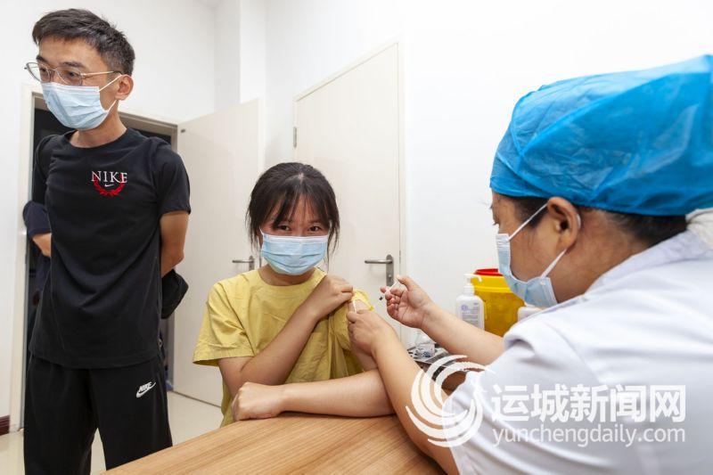 8月2日,一名学生在运城市中医医院接种新冠病毒疫苗。