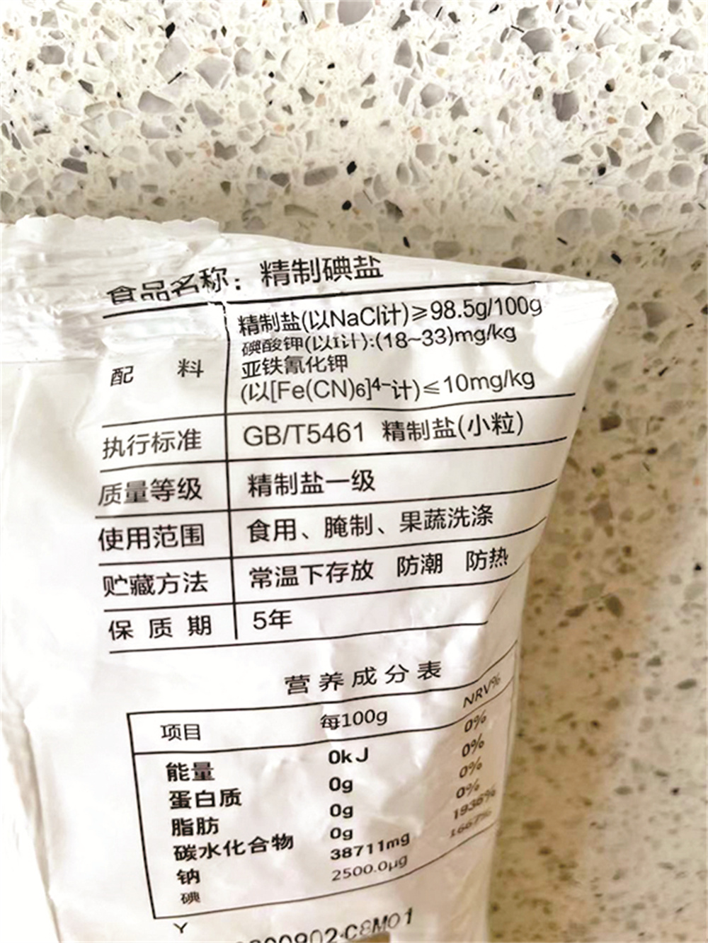 再来说说盐袋上标明的食盐质量等级。前面“食盐名称”处有提到“精制盐”和“日晒盐”,其中精制盐分为一级、二级、三级,日晒盐分为一级、二级。食盐等级越高,成分相对越干净,味道也更加纯正。