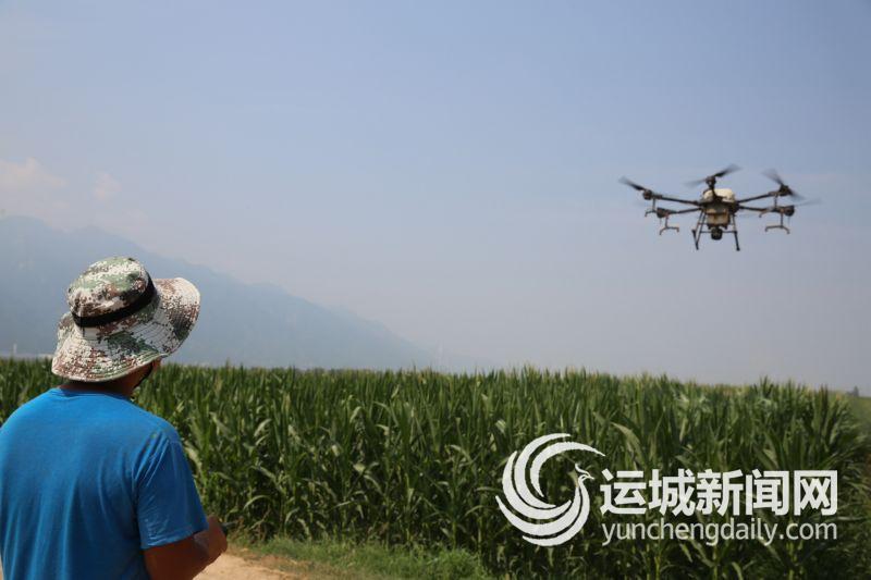 ▲8月3日,在永济市城东街道办事处孙常村,虞乡镇屯里村农业无人机“专业户”贾艳军,专心操作一架多旋翼植保无人机,为农民的玉米田进行除虫害作业。