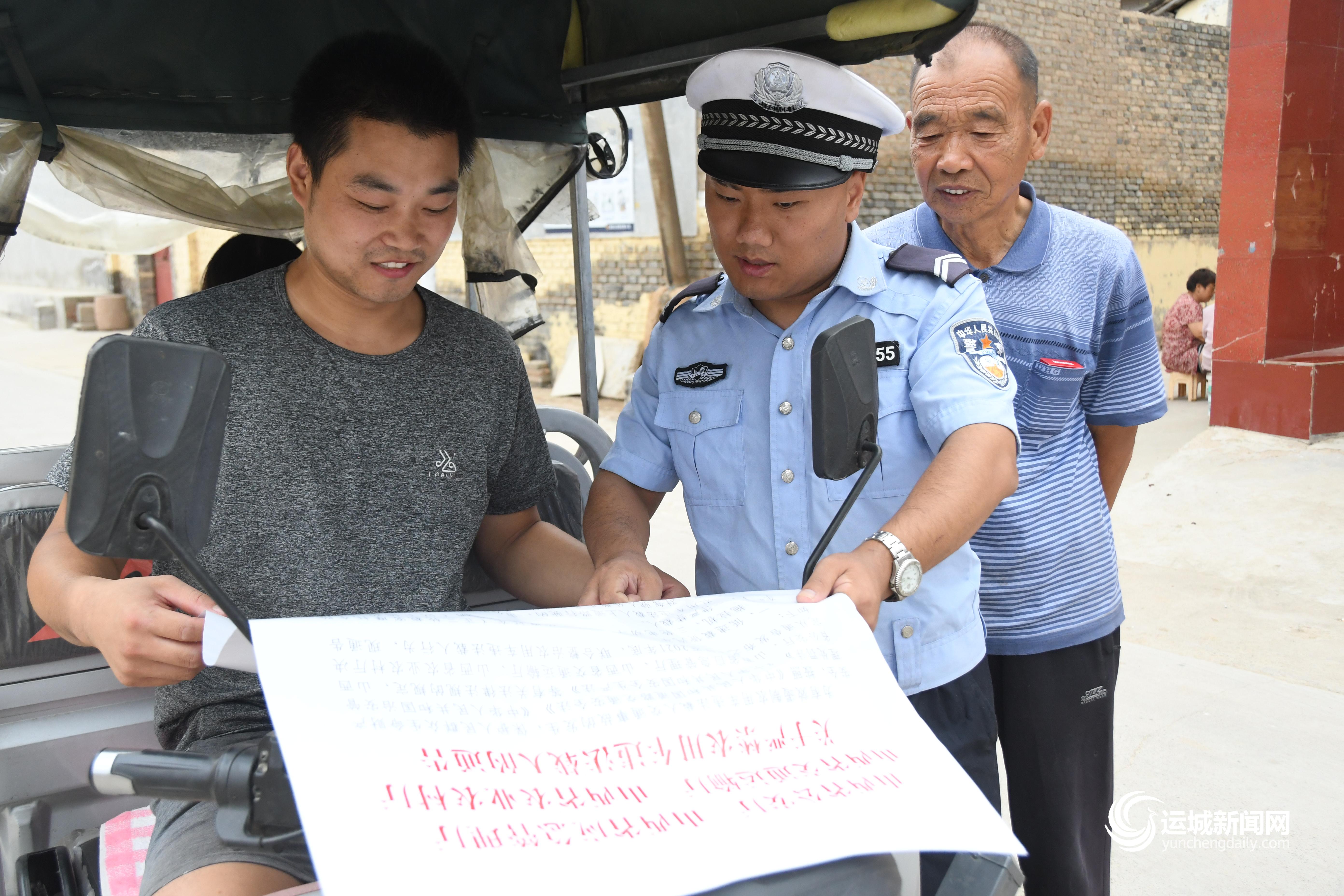 运城晚报讯(记者 樊朋展 张萌芝)为进一步营造良好的道路交通安全环境,全面提升群众的交通安全意识,有效预防和减少道路交通事故的发生,8月7日,夏县交警大队民警走进该县裴介镇毛家埝村,开展暑期“美丽乡村行”道路交通安全宣传活动。
