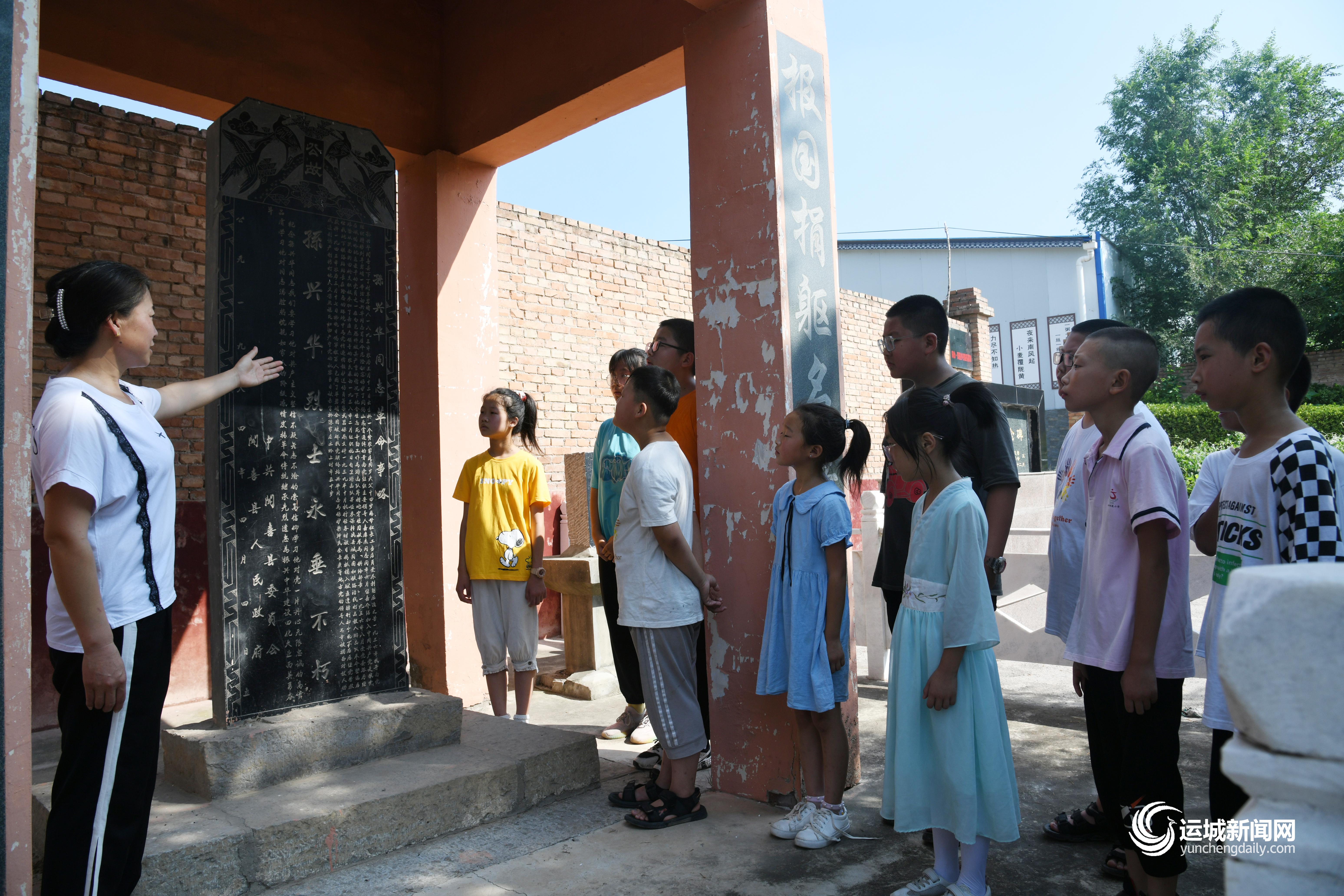 ▲8月7日,闻喜县阳隅镇下丁村学生参观村里的党史教育馆,聆听教师讲述党史故事。 暑假期间,该村组织本村学生开展党史学习教育,分别参观了村里的党史教育馆、村史馆等。通过参观学习,孩子们树立了“请党放心,强国有我”的信心。
