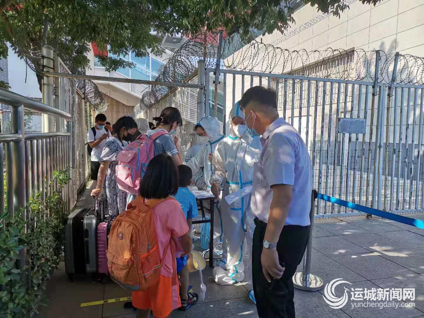 在永济北站接站现场,由永济市人社局、永济市餐饮协会的工作人员及志愿者统一带领孩子们到出站口进行登记、做核酸检测。由于出站人较多、天气较热,为防止孩子们等待时间较长,在与永济北站工作人员、中医院医护人员协调后,为孩子们设立单独登记点、检测点,并由工作人员领出通道交付给接站的家人,各项工作有条不紊。