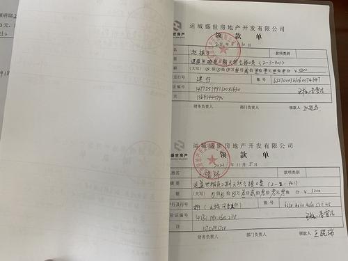 ▲在监管部门的介入下,盛世房地产开发有限公司将多收的天然气接口费逐一退还给业主。图为该公司办理退款后的回执。