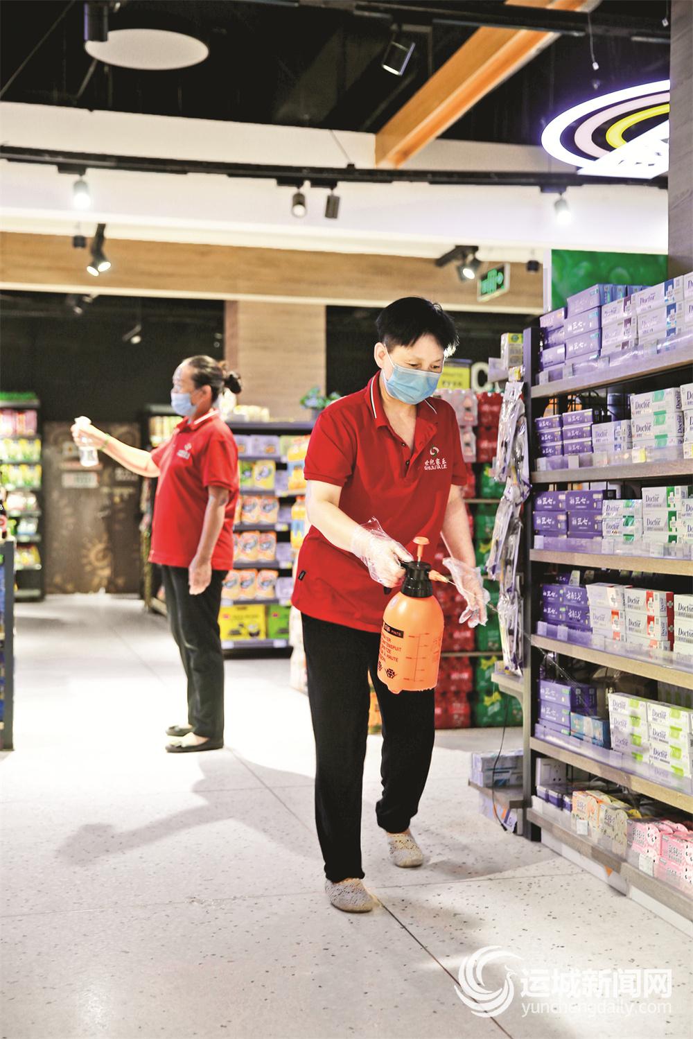 运城晚报讯 消杀无死角,防疫全覆盖。近日,永济市世纪家乐超市内,工作人员对各类商品、货架和相关场地进行防疫消杀,保障顾客的购物安全。