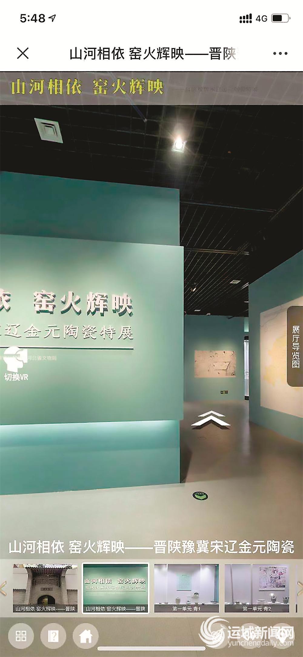 “基本陈列”中,既有“华夏寻根”“馆藏珍品”“盬盐春秋”“条山风云”等专题展,也有“山河相依 窑火辉映——晋陕豫冀宋辽金元陶瓷特展”“古河东·考古进行时”数字化展览等临时展览。其中,陶瓷特展虽然是2017年举办的“过去式”,但由于其规模大、精品多,为了满足广大观众的需求,运城博物馆特地利用全景技术进行实景还原,您只需点开相应栏目、识别对应的二维码后,即可在悠扬的背景乐中,实现一个人的私属观展。