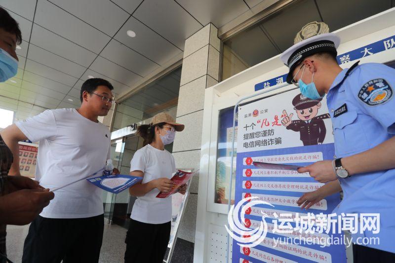 8月16日,市公安局盐湖分局交警大队民警向群众宣传十个“凡是”,提醒群众增强防范意识,避免上当受骗。 葛崇收 摄