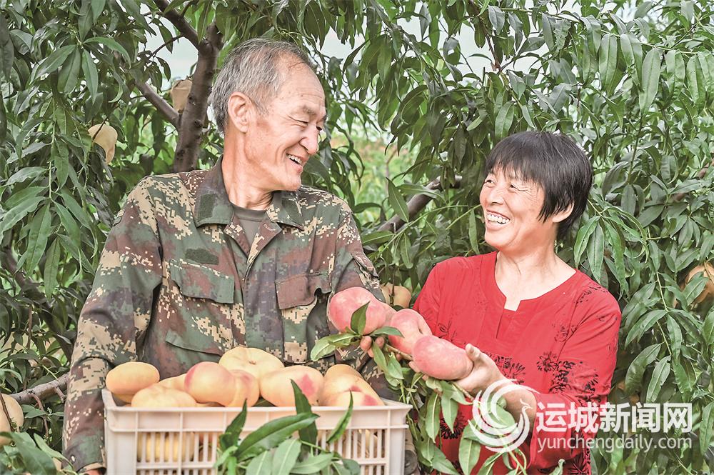 ▲8月16日,万荣县汉薛镇南景村村民王来喜夫妇,看着刚摘下来的蟠桃欣慰地笑了。 王来喜夫妇经营着3亩中蟠14、中蟠17蟠桃园。他俩不施化肥,大胆采用新型生态肥料,来提高蟠桃品质。产出的蟠桃个大、甜香,深受市场青睐。最大的蟠桃重0.5公斤,最小的也有7两,平均重量达8两。以每公斤蟠桃市场价10元计算,3亩蟠桃收入将近12万元。特约摄影 解建国