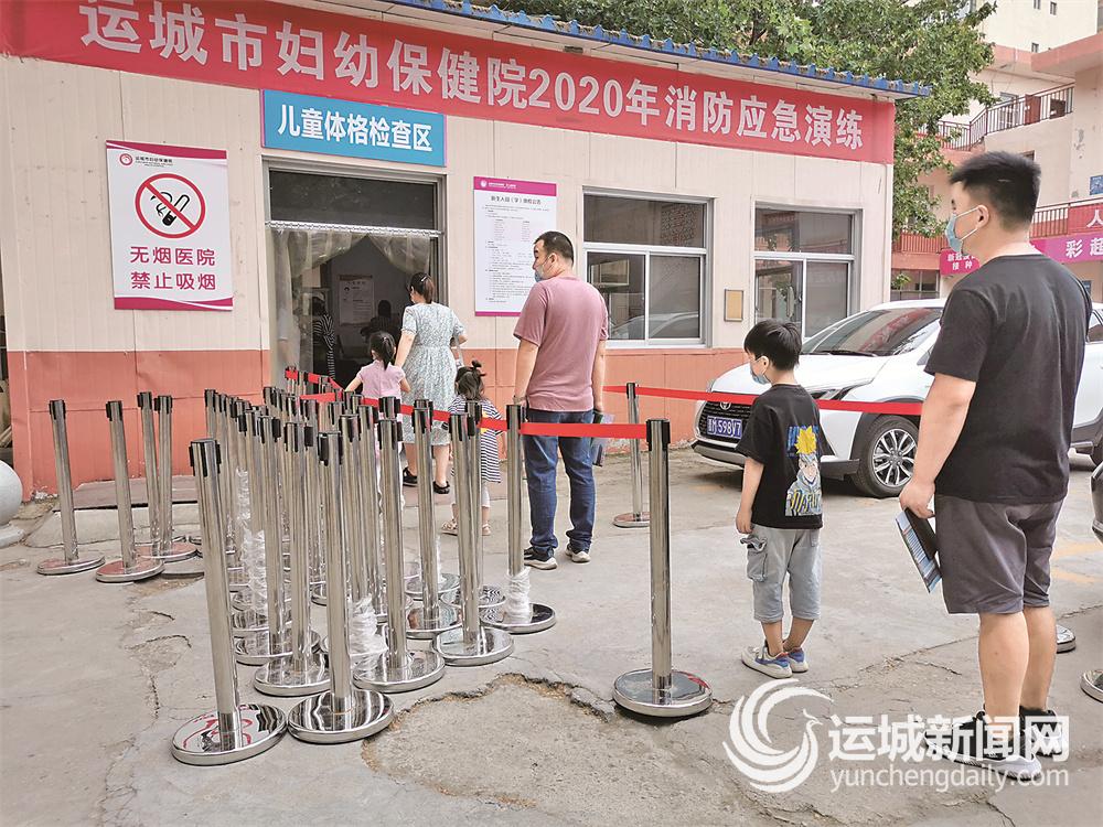 近日,在市妇幼保健院北院综合楼一层及后院功能区,每天都有小朋友在家长的陪同下,间隔一米距离,有序排队,进行入园体检。