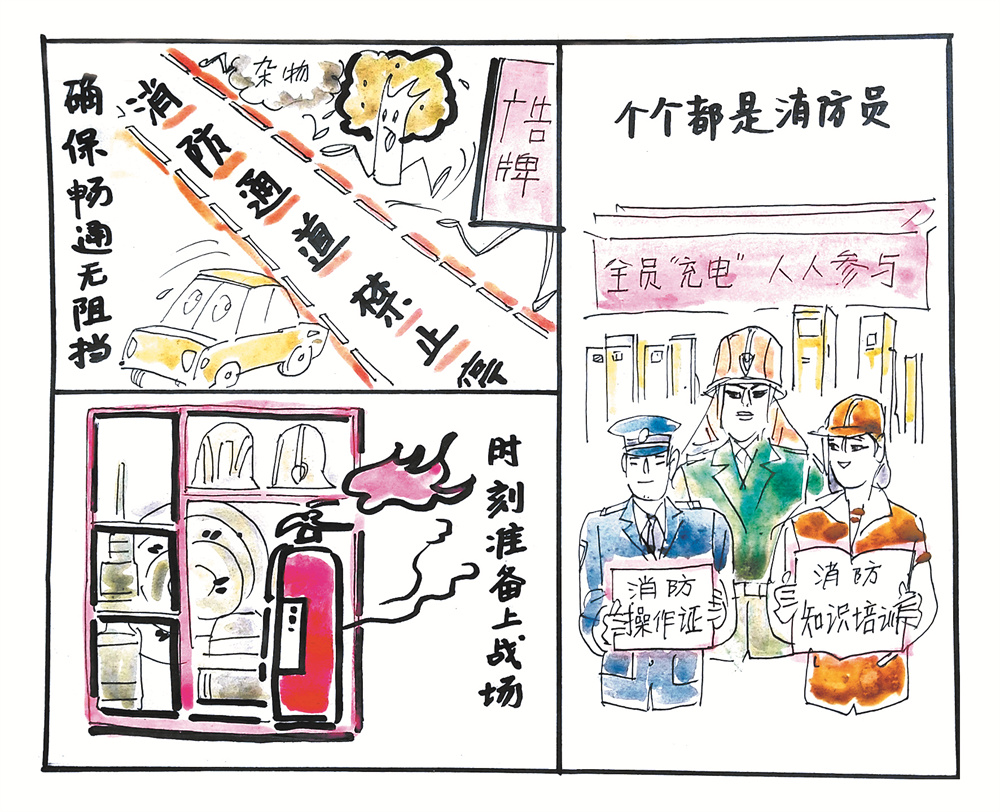 每年,小区物业都会开展一次大型消防演练。演练中,消防人员、物业人员和居民听从指挥、密切合作、积极配合。社区居民王玲说:“参加小区组织的消防演练,一方面使大家的消防安全意识增强了,另一方面了解掌握火情发生时的处理流程,提升居民在火情发生时的协调配合能力,增强大家互救、自救技能。小区物业的这个做法好,值得点赞!”