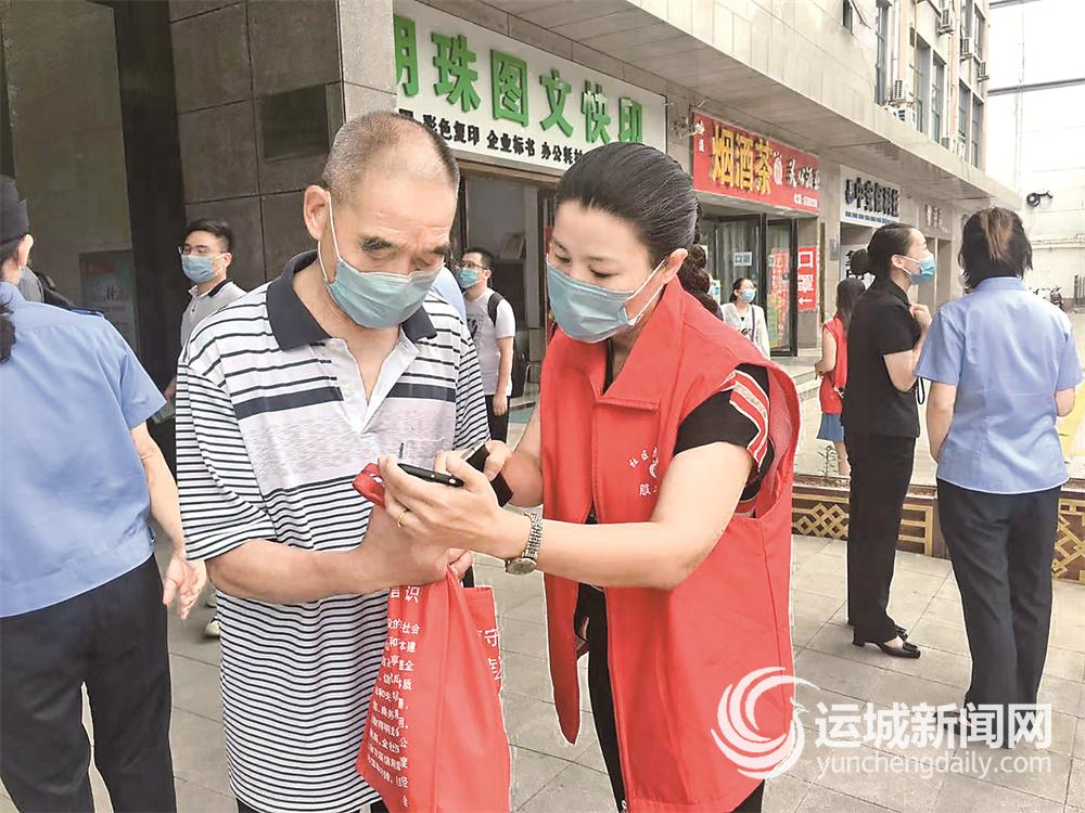 运城晚报讯(记者 李婷)“不轻信陌生来电,不给陌生人转账……”“你好,请出示健康码、行程卡、新冠病毒疫苗接种记录……”近日,盐湖区东城街道广场社区在职党员深入各小区,宣传反电诈知识、加强小区疫情防控。