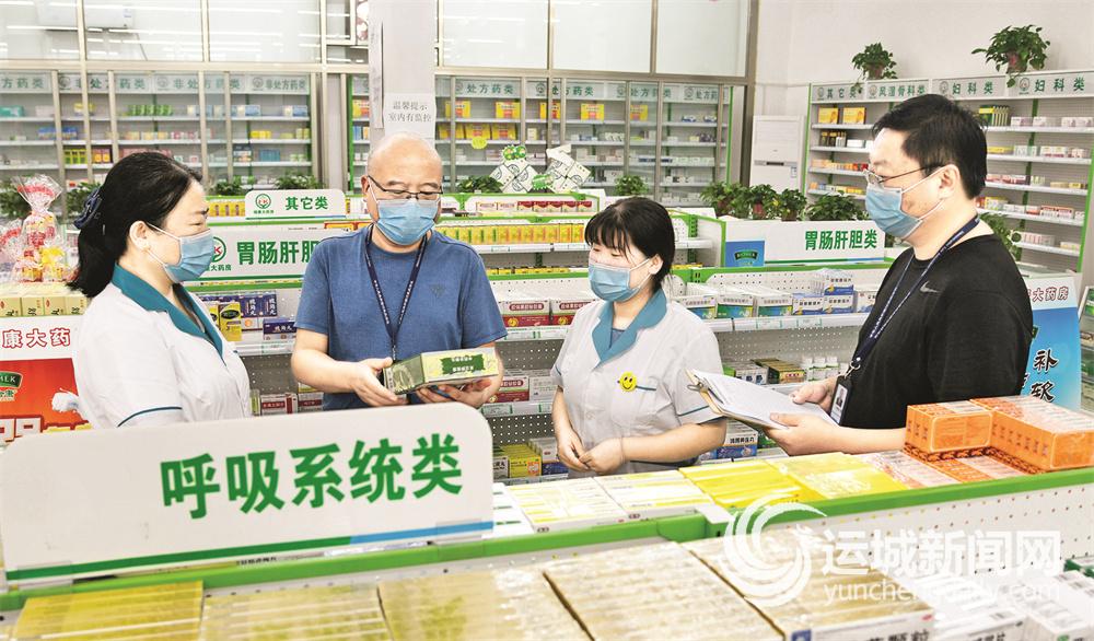 8月20日,闻喜县市场监督管理局东城所工作人员在药店检查疫情防控工作。