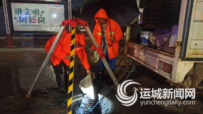 8月22日3时,市区出现连续强降雨,各易积水路段、泵站等排水一线,全员开始有序投入助排工作。市排水服务中心会同市城市管理综合行政执法队,对一些积水严重的路段进行临时管制,确保道路安全。